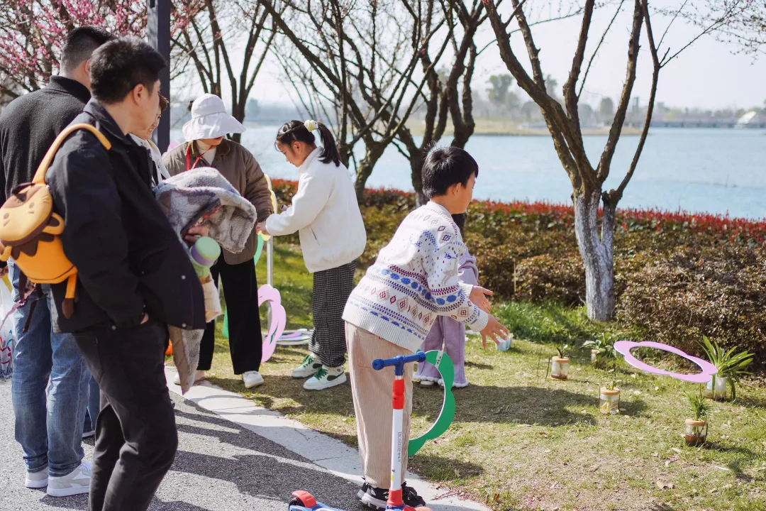 户外放风一定不要错过妙趣横生的互动小游戏,漫步在天鹅湖畔,不妨参与一场套圈、投壶或射击游戏,每一次投掷套出,都是对技巧的考验,也是对幸运的期盼。宁心静气的掷出,准确投中的成就感油然而生;寻宝游戏则是一场充满惊喜的探险之旅,在环湖的银杏林中,藏匿着许多风筝,等待着你的发现,不要忘记取下纸条兑换属于你的宝物哟~(每人每天仅兑换1次)